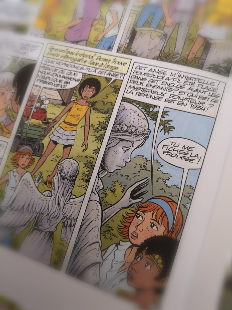 Une bande dessinée qui vous happe: une enquête à travers les âges. On suit pas à pas les rebondissements et les actions de ces personnages féminins. Un sublime alliage entre tradition et modernité, tant dans les dessins que dans l’histoire. Cet album m’a donné envie de me plonger dans d’autres de cette série. Cela tombe bien, nous rangeons notre bibliothèque durant les vacances avec ma maman, j’en prendrai quelques uns au passage…
