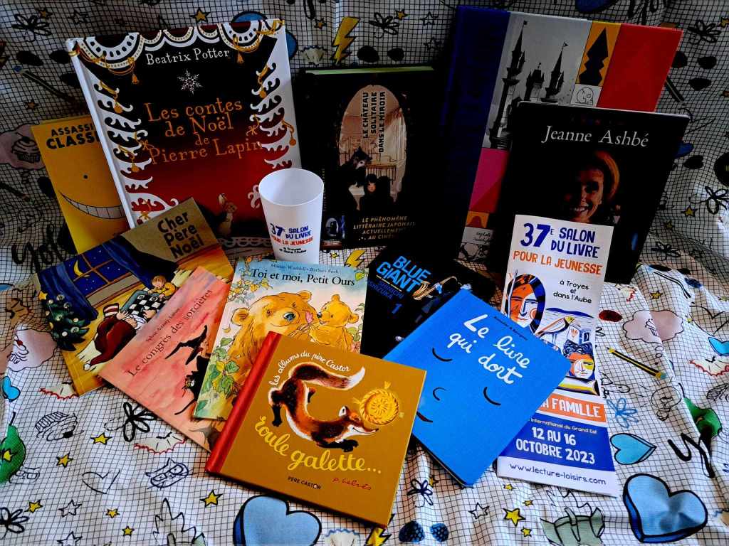 J’aurai le plaisir de faire des retours sur ces livres que vous retrouvez sur la photo, qui ont été les heureux élus de ma visite au salon (mais vous vous en doutez, si vous avez l’habitude de faire des salons, qu’il y en a d’autres qui rejoindront la pile plus tard!).