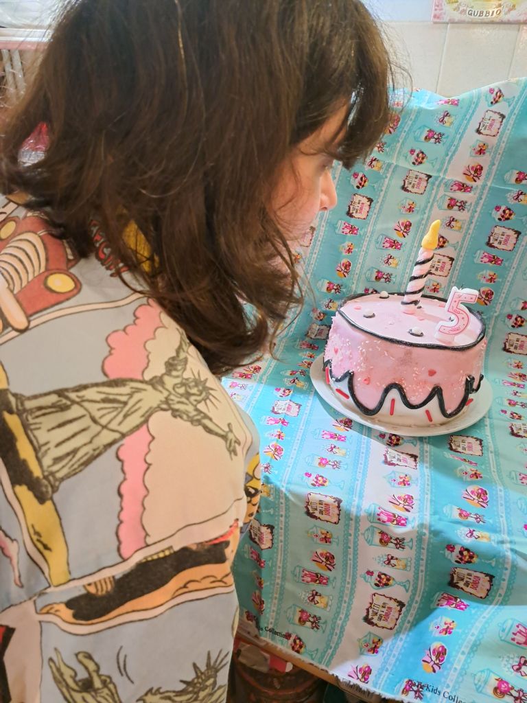 Pour l’occasion, j’ai fait un cartoon cake saveur framboise et aux couleurs de mon blog !